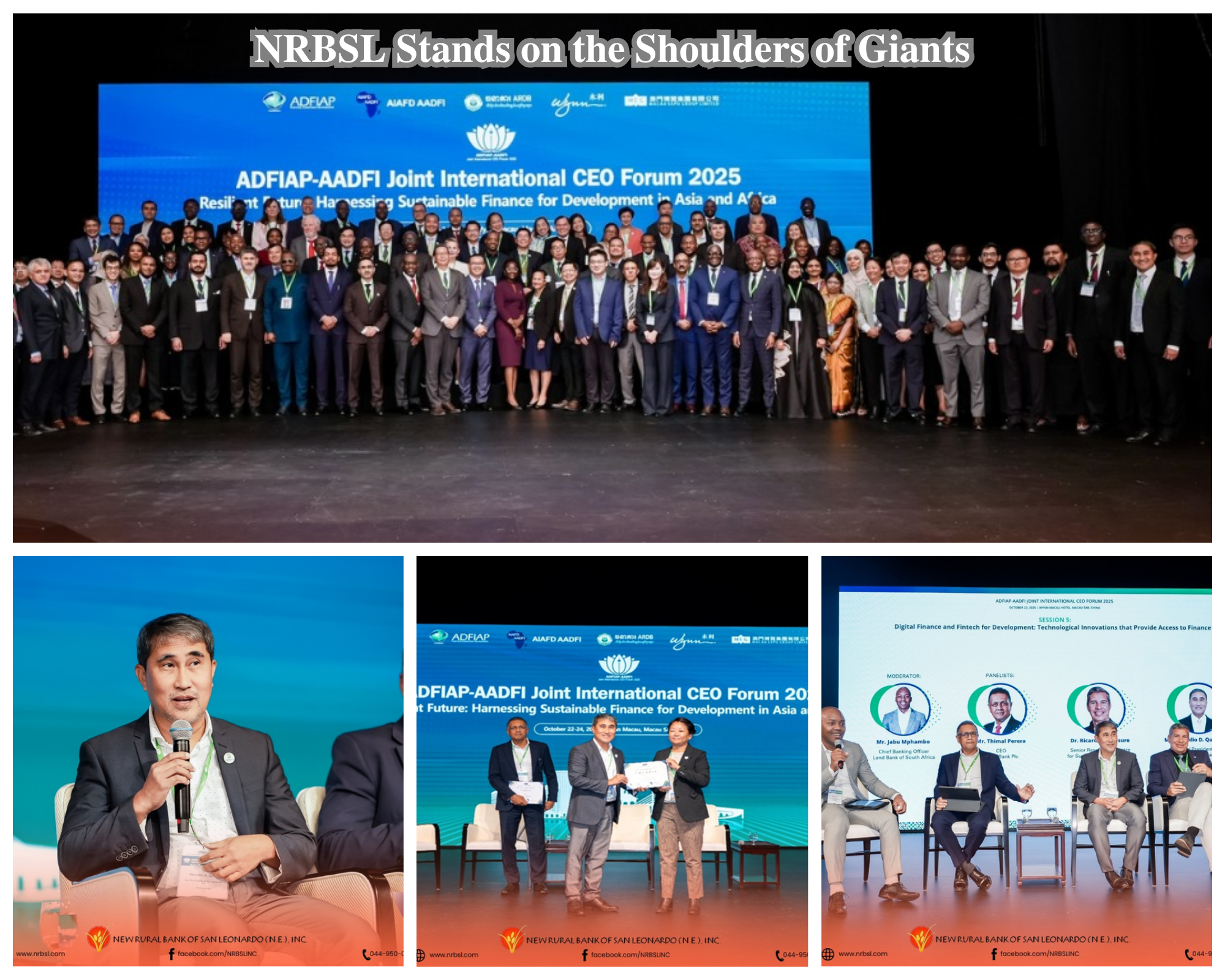 The majority of ADFIAP's member-institutions are funded by their respective government while private initiatives are mostly large corporation or MFIs which are capitalized by business entities or supported by grant funds. NRBSL lacks any of these attributes. Nonetheless, the participation of NRBSL in the recent ADFIAP's General Assembly served as a window for the Bank to look for insights from the international financial environment. It is not a way to measure-up but to have a glimpse on how it can scale-up its operations with the current trends in development finance.
