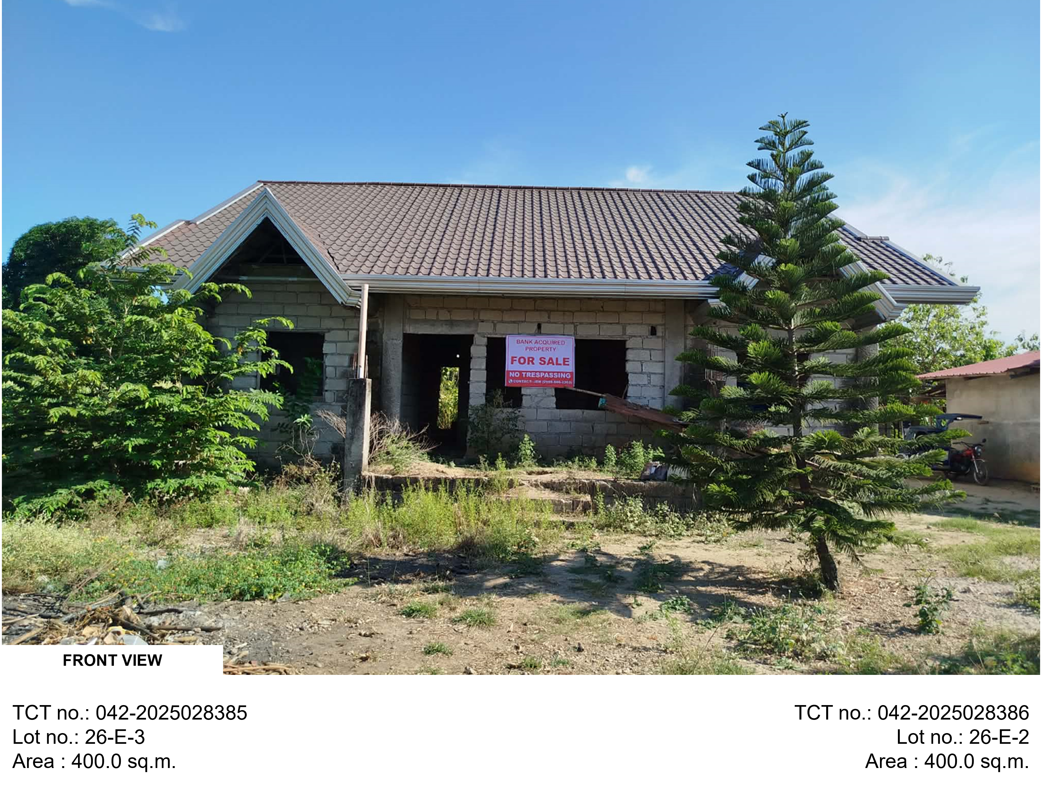 4. TCT No.: 042-2025026623 Lot No.: 1071-J Kind: Residential Area: 137m² Location : Brgy. San Mateo, Arayat, Pampanga Minimum Bid (PhP): 782,800.00 Disclosures : A, O |