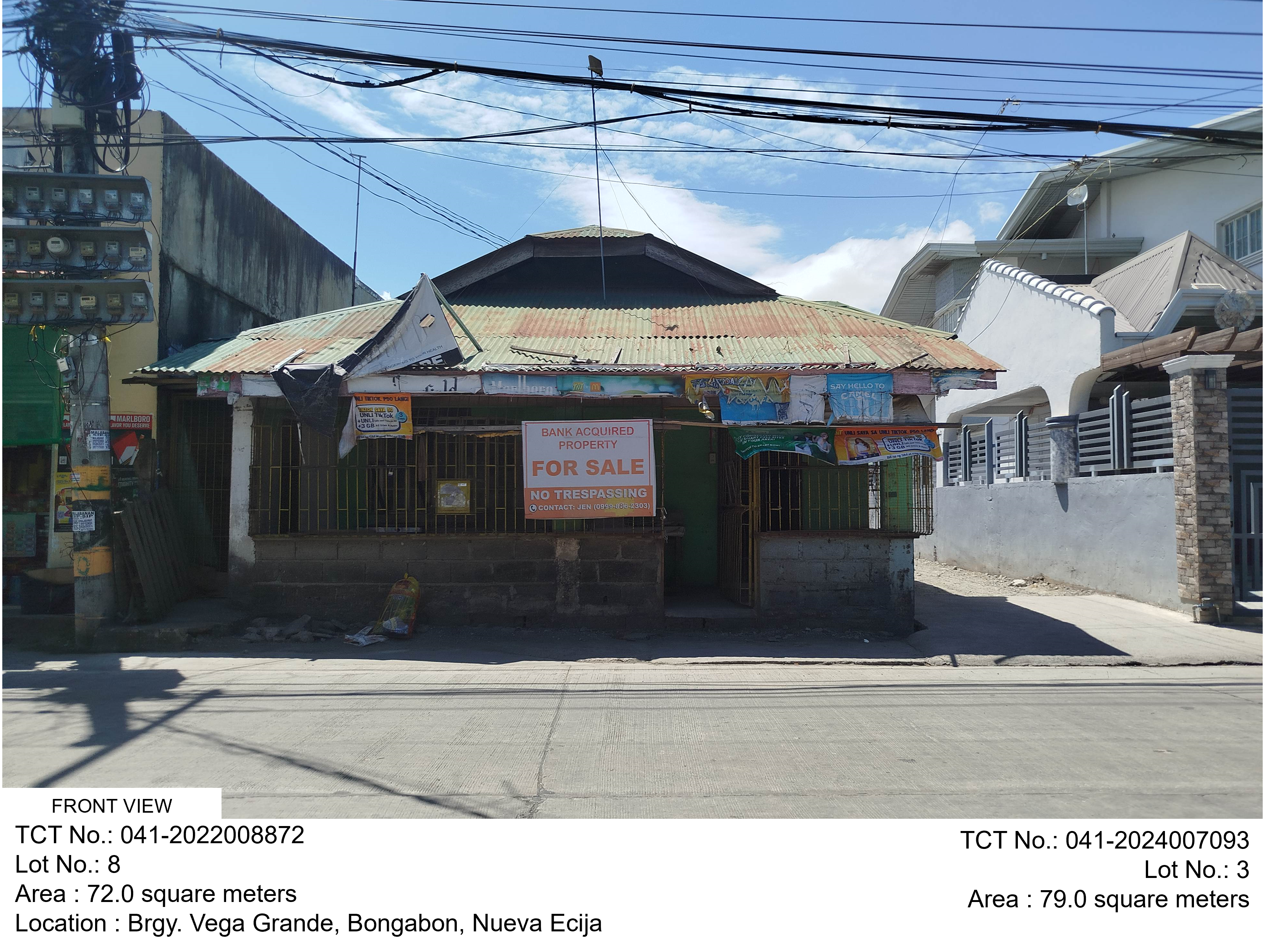 6. TCT No.: 041-2024005380 Lot No.:8 Kind: Residential Area: 300sq.m. Location : Brgy. Larcon, Bongabon, Nueva Ecija Minimum Bid (PhP): 2,762,080.00 Disclosures : A;G |